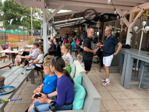 Met ingang van oktober gaat tennisschool Borg de tennislessen bij onze tennisvereniging verzorgen. Gisteren (31 augustus) konden de leden en belangstellenden op de door hen georganiseerde open dag kennis maken met de nieuwe tennisleraren. Nadat ze mannen zichzelf uitgebreid hadden voorgesteld begonnen de clinics voor de jeugd en de volwassenen. De middag werd afgesloten met een demonstratie wedstrijd tussen Maikel Borg en Julian Lardinois. Met een heerlijk drankje konden de deelnemers en toeschouwers langs de kant zien dat het geen overbodige luxe is om in te schrijven voor hun tennislessen 😉. De foto’s en videobeelden spreken voor zich!