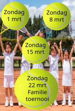 De BINGO-weken zijn de jaarlijkse weken waarin we jullie weer willen voorbereiden op het nieuwe tennisseizoen. In een aantal sessies van een uur leren we jullie de nodige kneepjes om lekker te kunnen spelen, maar gaat het ook vooral om gezellig met elkaar sportief bezig te zijn. Dit jaar zijn er 3 sessies, allemaal tussen 10:00 en 11:00. Zet direct de volgende data in je agenda: