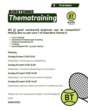 Genieten van een mooi potje tennis, op woensdagavonden, in de maanden mei en juni. Dat is de Zomeravondcompetitie.